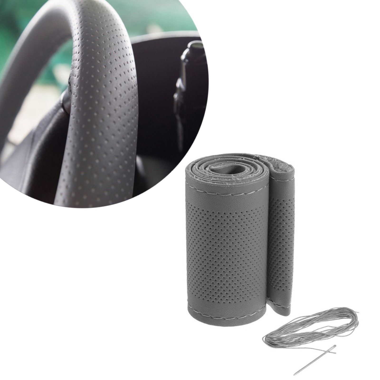 Сшивной чехол Cartage на руль, 38 см, натуральная кожа, антискользящая, серый