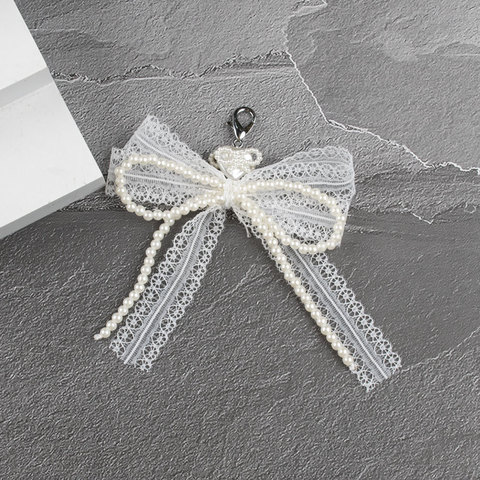 Кружевной брелок с бантом и жемчугом в форме сердца