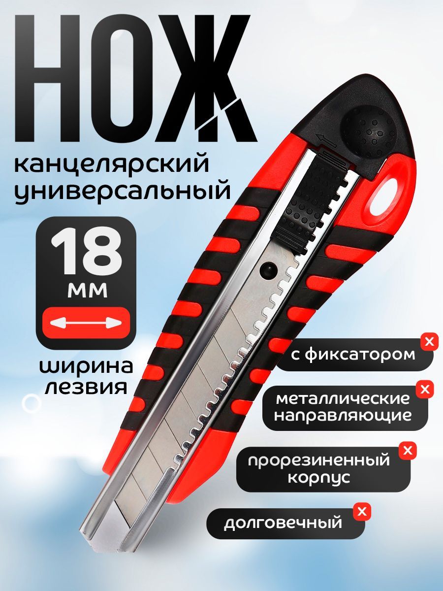 Нож канцелярский 18 мм пластиковый, автофиксатор, резиновые вставки, металлические направляющие