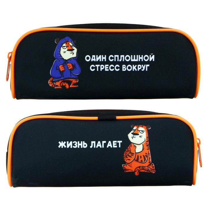 Пенал-косметичка школьный, 1 отделение, объемный, 80 х 210 х 40 мм, Calligrata "Тигр"