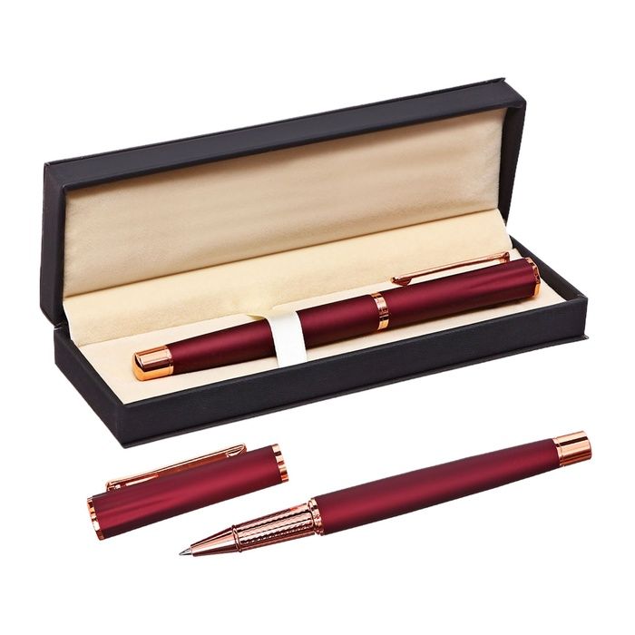 Ручка подарочная роллер в кожзам футляре Софтач корпус бордовый/золото