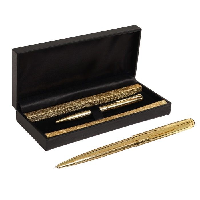 Ручка подарочная шариковая в кожзам футляре поворотная ПБ S, корпус золотистый