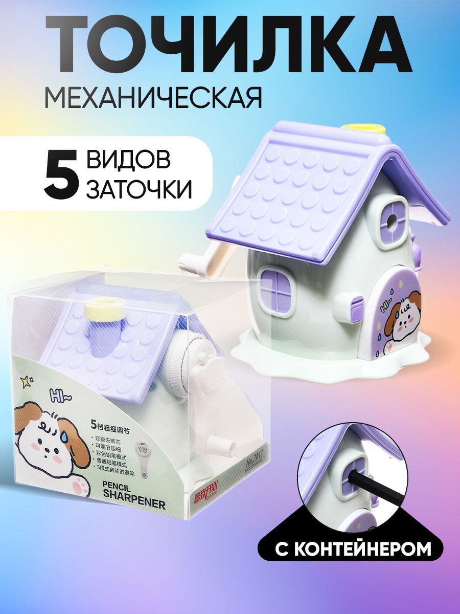 Точилка механическая с контейнером, 5 видов заточки "Домик", белая