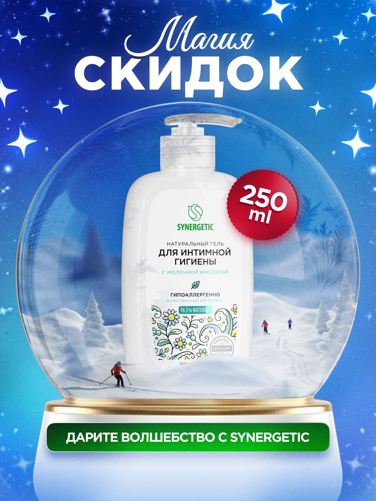 Гель для интимной гигиены с молочной кислотой для ежедневного ухода SYNERGETIC, 250 мл