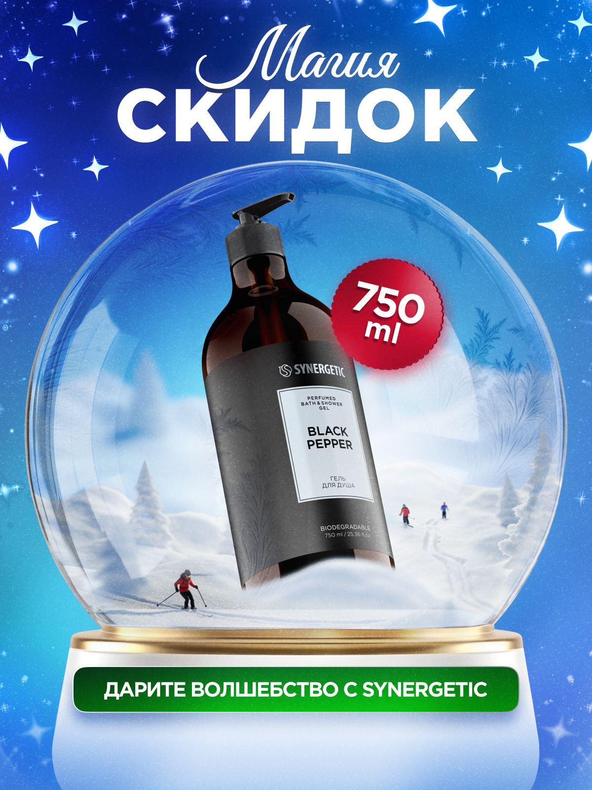 Парфюмированный гель для душа SYNERGETIC SELECTED BLACK PEPPER, 750 мл