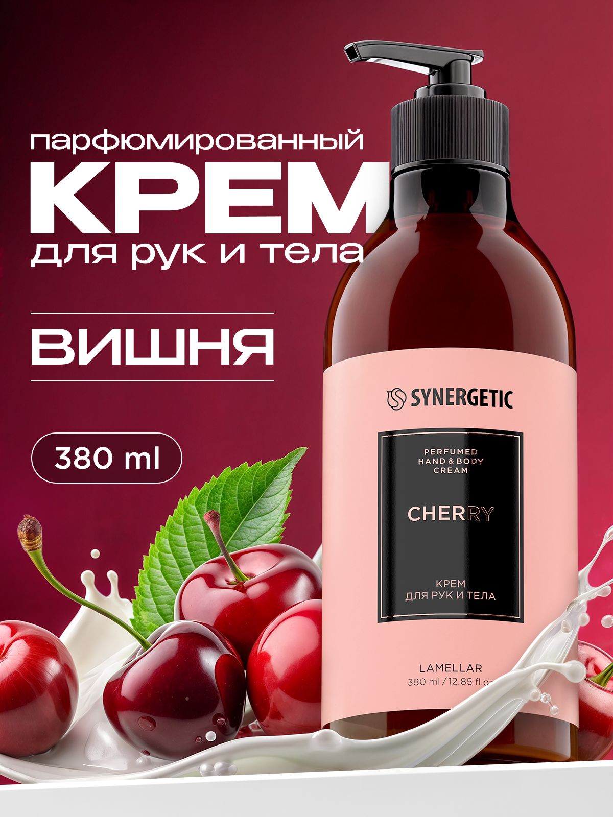 Парфюмированный крем для рук и тела SYNERGETIC SELECTED CHERRY, 380 мл