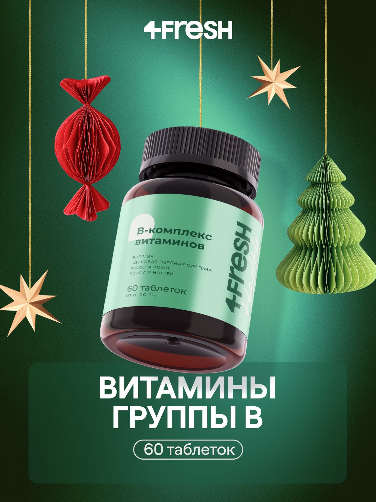 Витамины группы B (Б-витамины) 4FRESH витамины от стресса и тревожности, БАДы для нервной системы, без диоксида титана, 60 таблеток