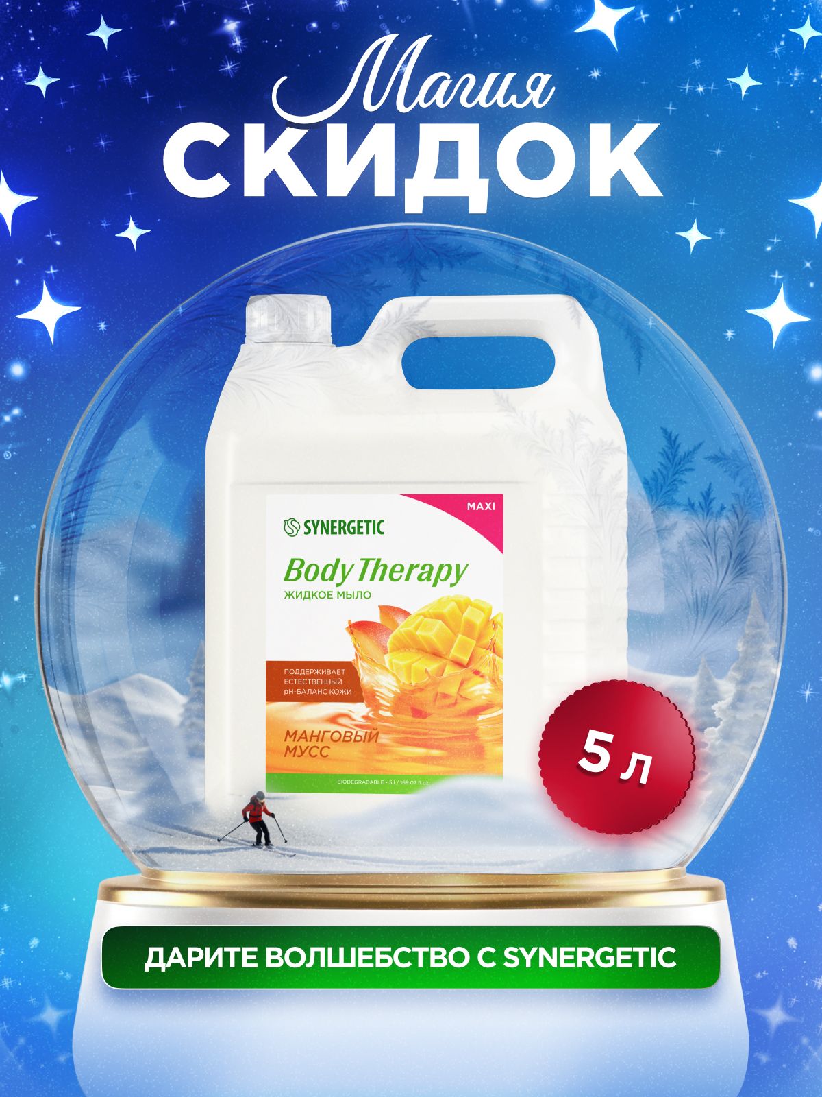 Жидкое мыло для рук 5 л SYNERGETIC "Манговый мусс"