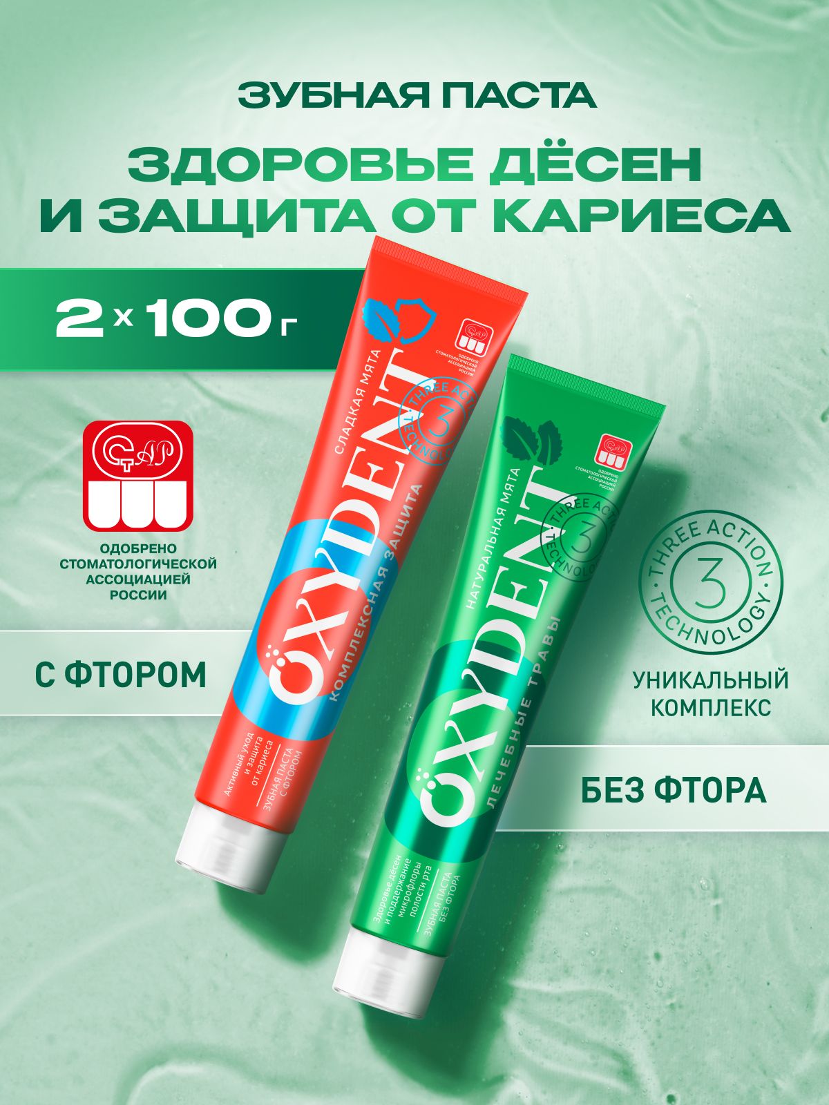 Зубная паста OXYDENT Комплексная защита + Лечебные травы, 2 х 100 г