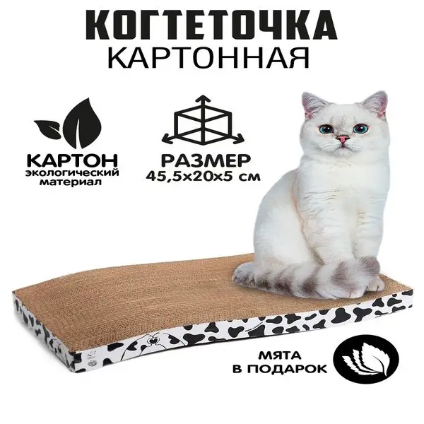 Когтеточка картонная для кошек напольная с мятой, волна