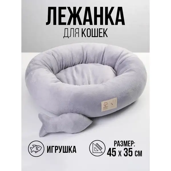 Лежанка с рыбкой для кошек мягкая