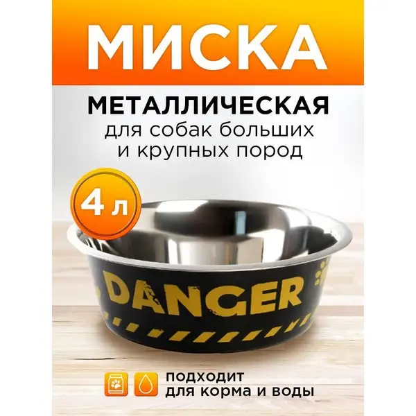 Миска металлическая для собак, 4 л