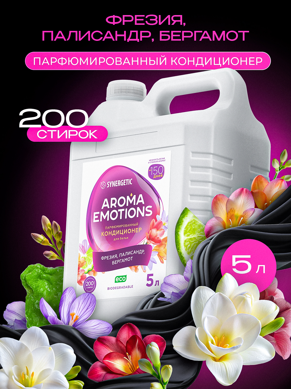 Кондиционер для белья парфюмированный SYNERGETIC " AROMA EMOTIONS" Flower Mystery 5 л Joy / Радость