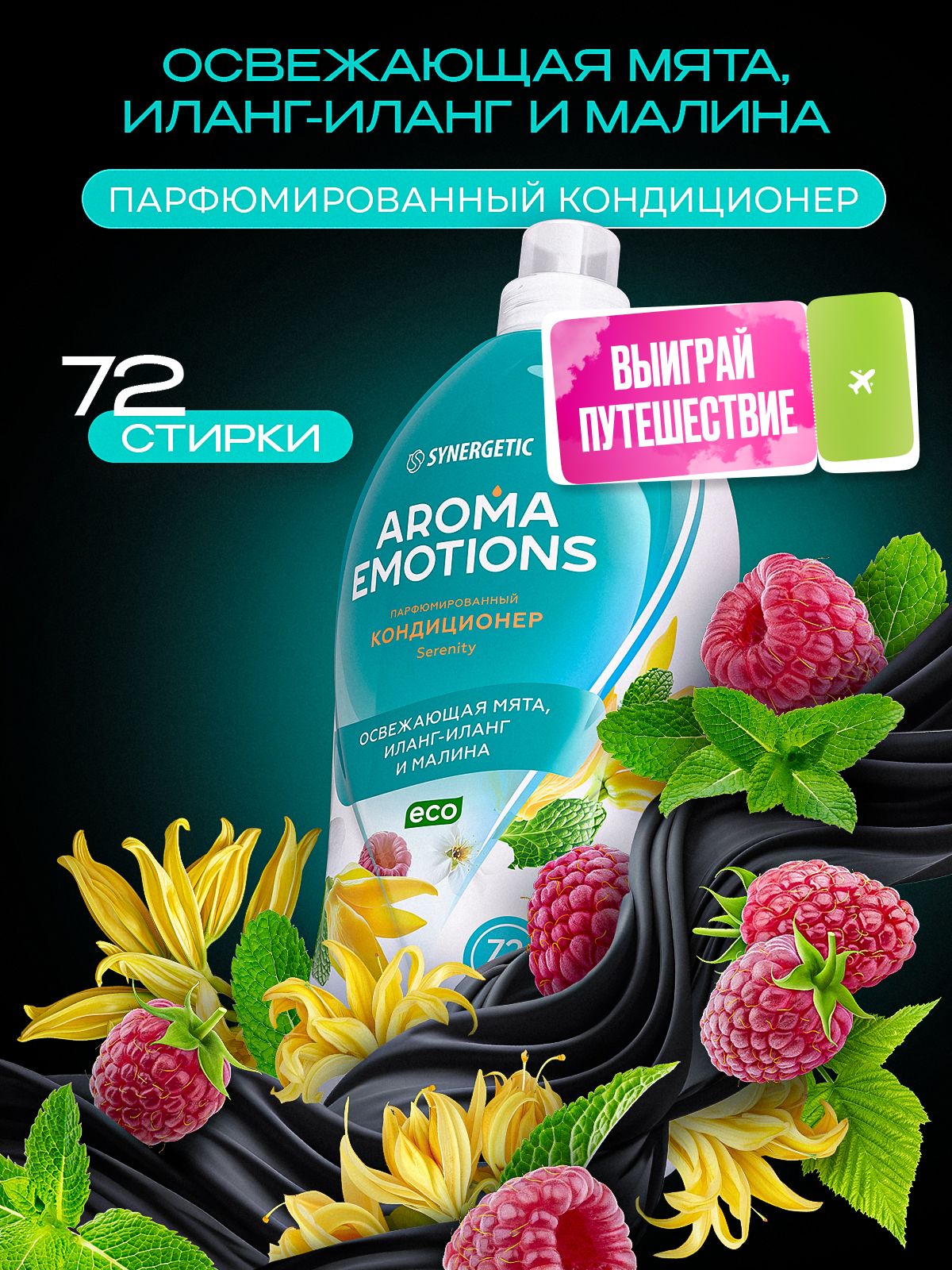 Кондиционер для белья парфюмированный SYNERGETIC "AROMA EMOTIONS" Serenity / Безмятежность 1,8 л