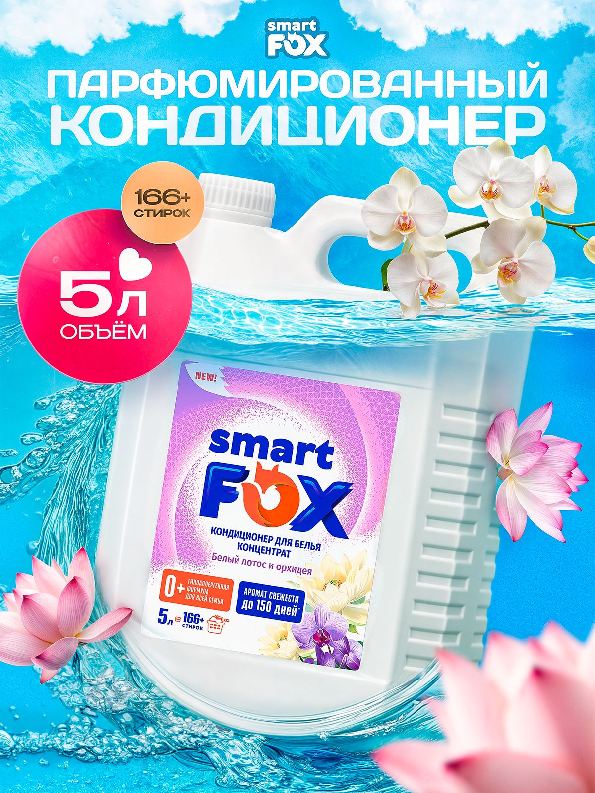 Кондиционер для белья SMART FOX Белый лотос и орхидея, 5л