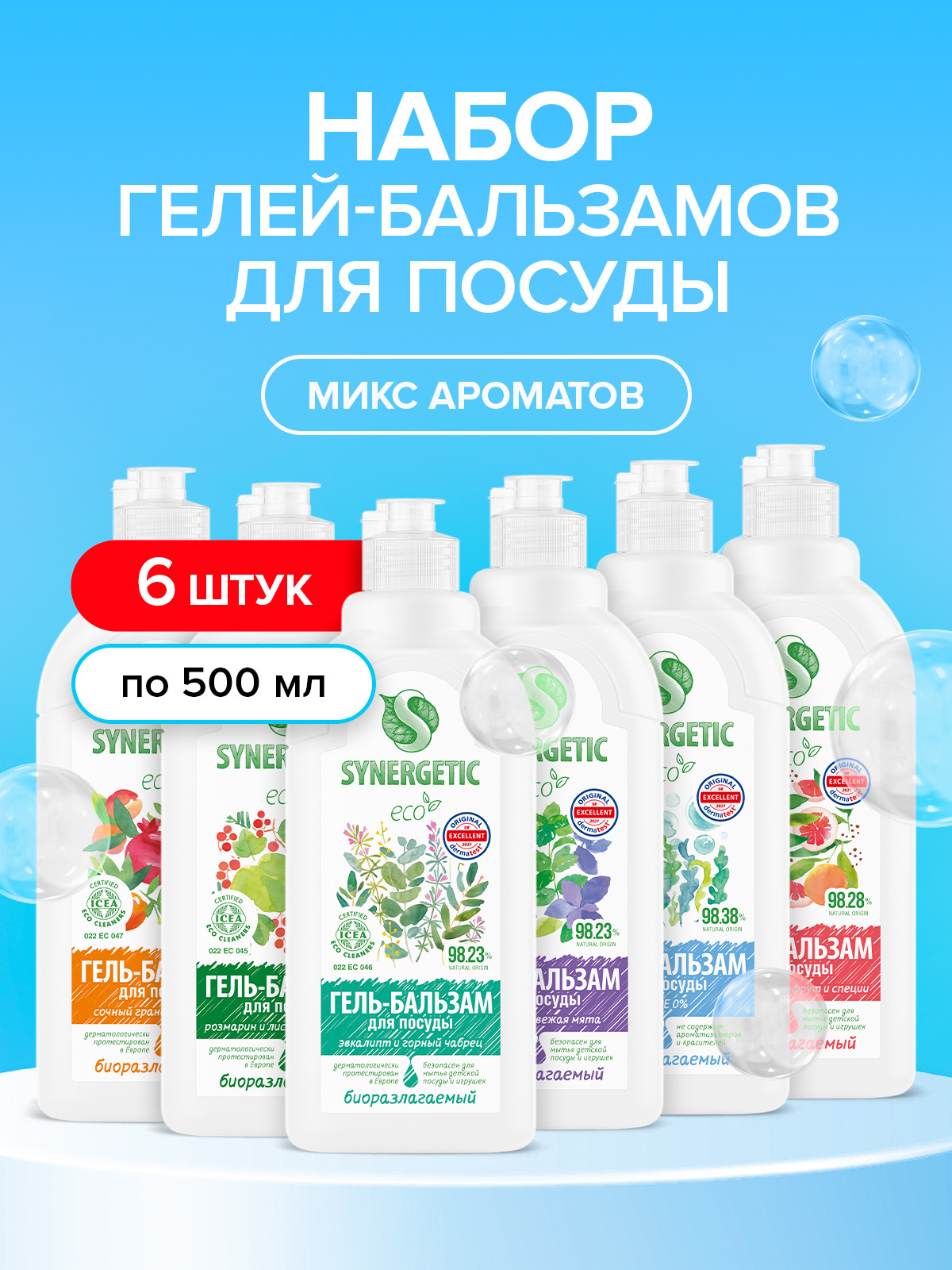 Средство для мытья посуды, (гель-бальзам) ассорти, 500мл, 6шт (6 ароматов), набор