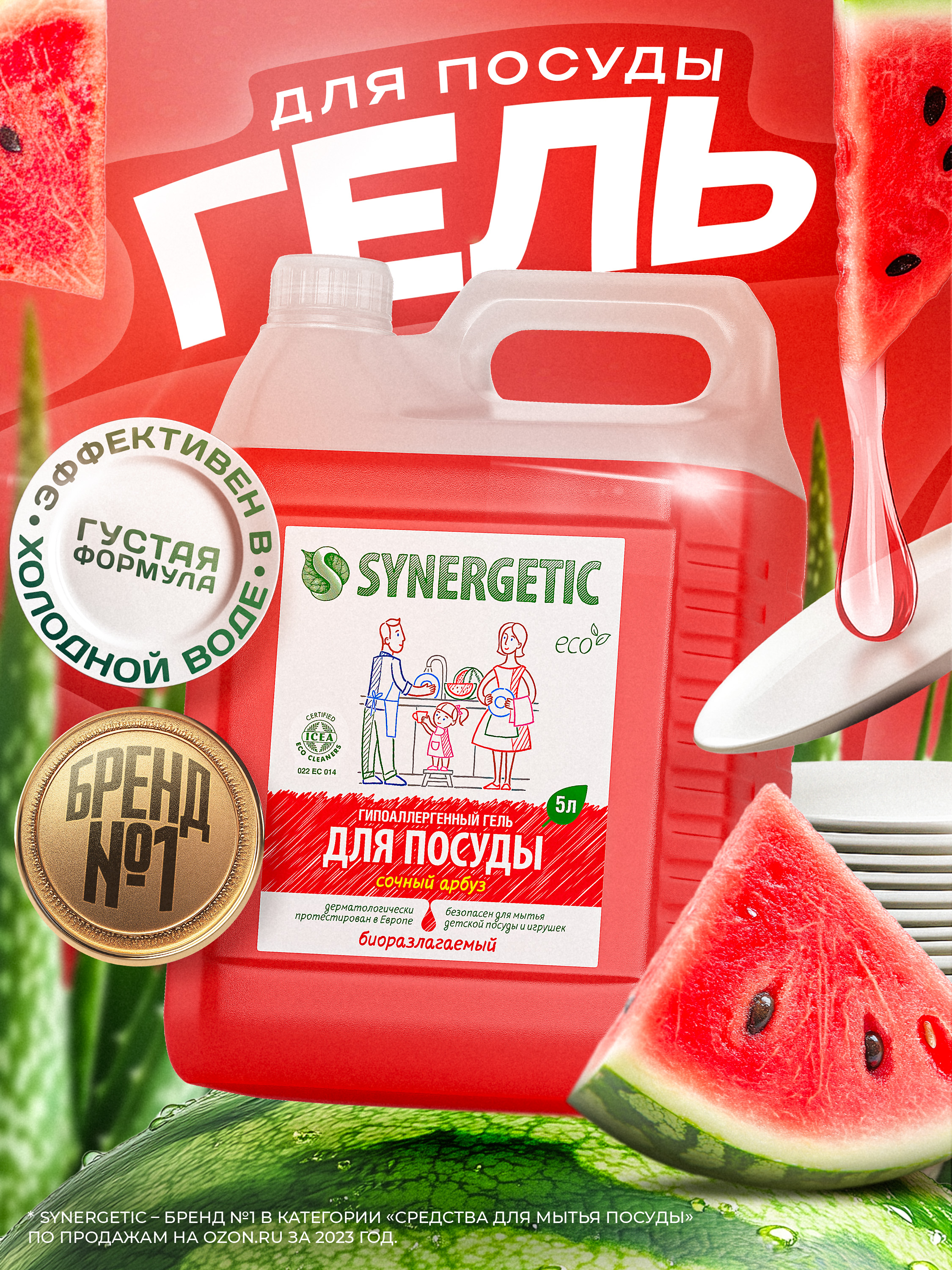 Средство для мытья посуды SYNERGETIC с ароматом АРБУЗА 5л