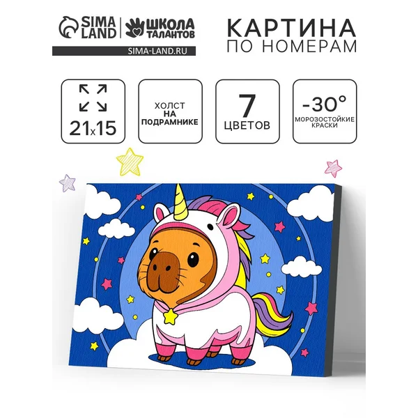 Картина по номерам на холсте для детей "Капибара" 21×15 см